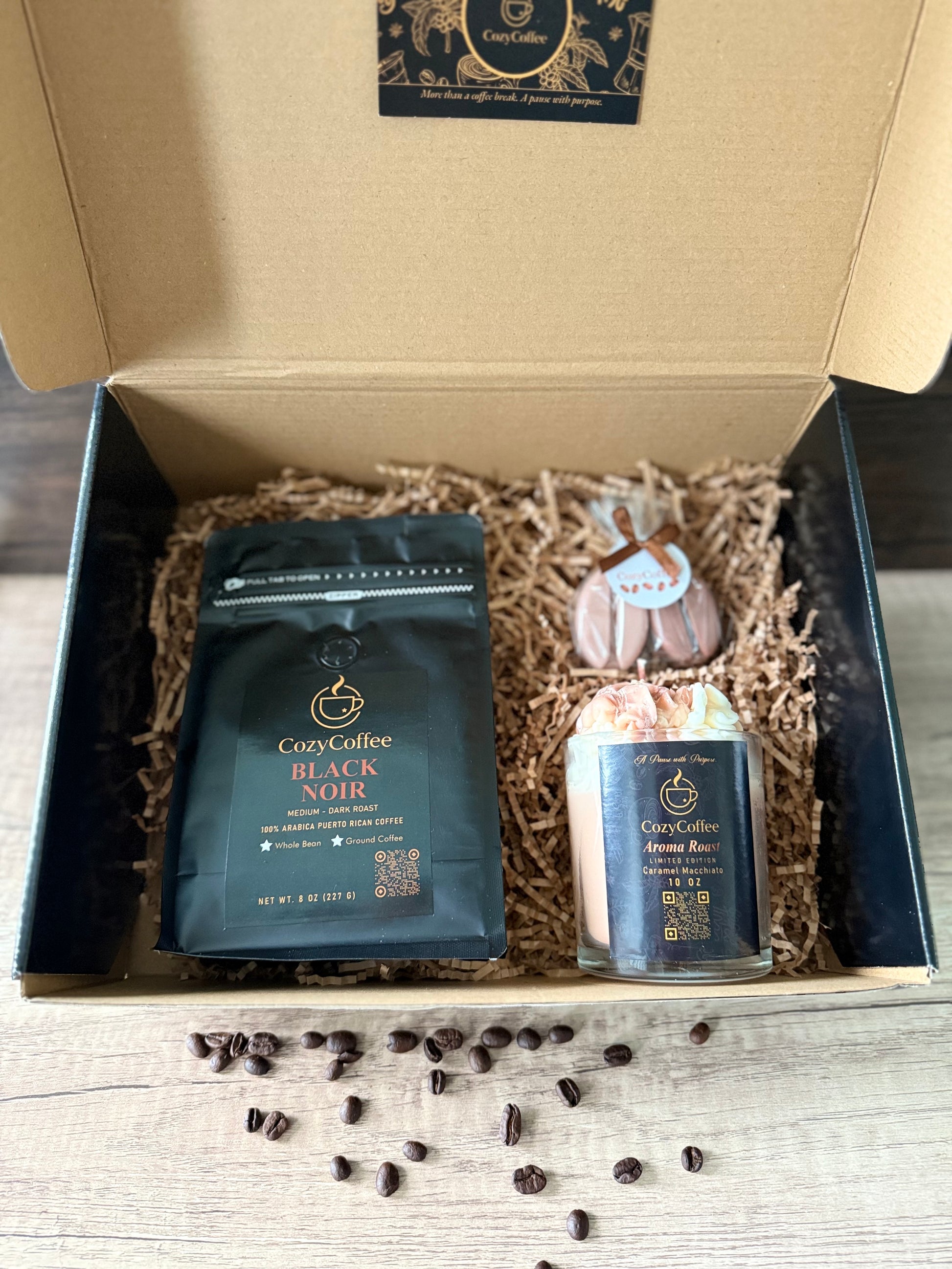 The Lumen Noir Set is a symphony of balance — the bold aroma of Black Noir, the golden glow of a Caramel Macchiato Candle, and the gentle touch of handcrafted coffee-bean soaps.